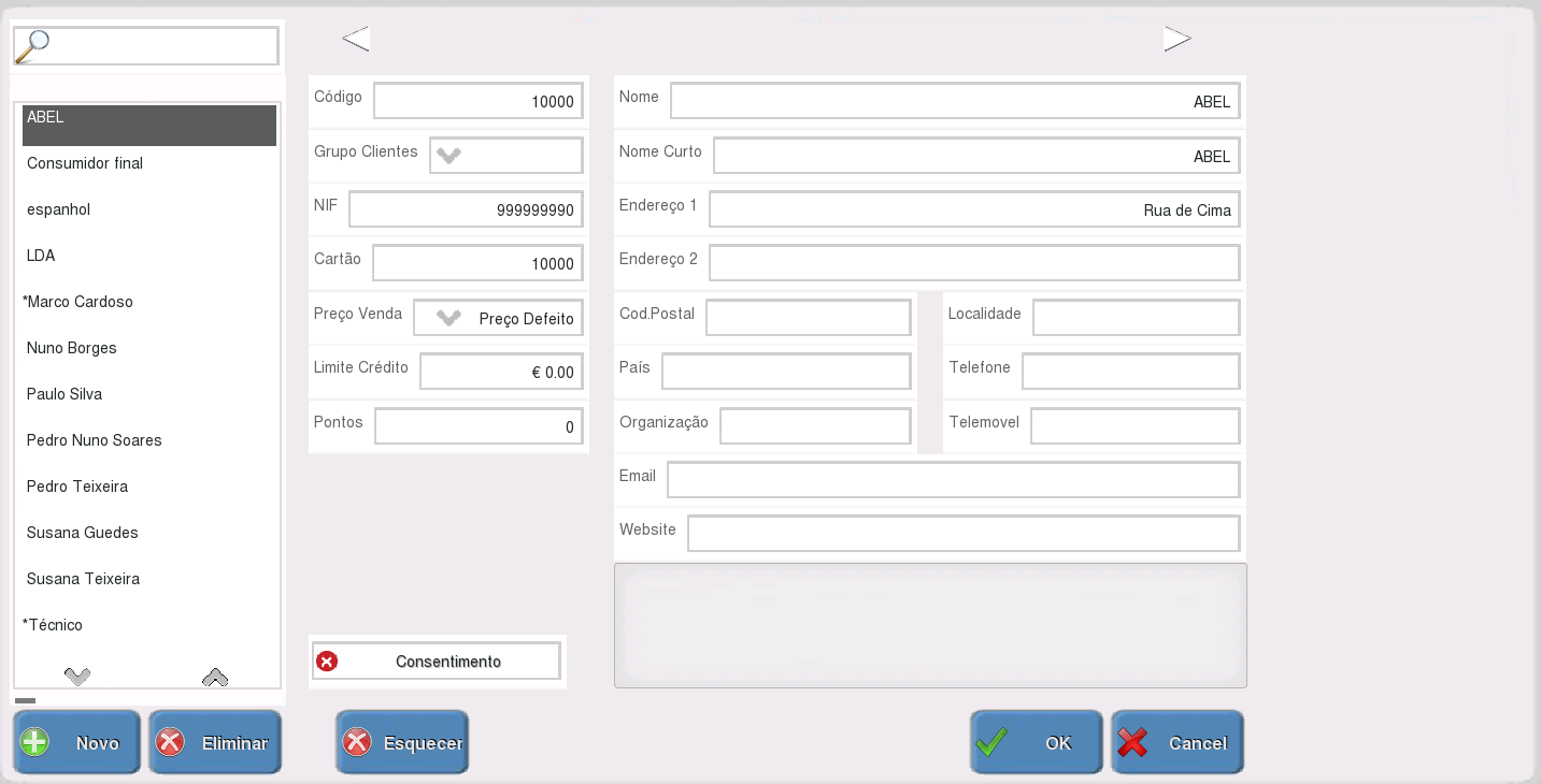 - Endereço de correio eletrónico;