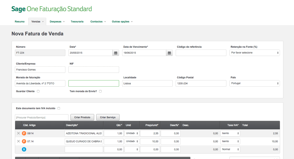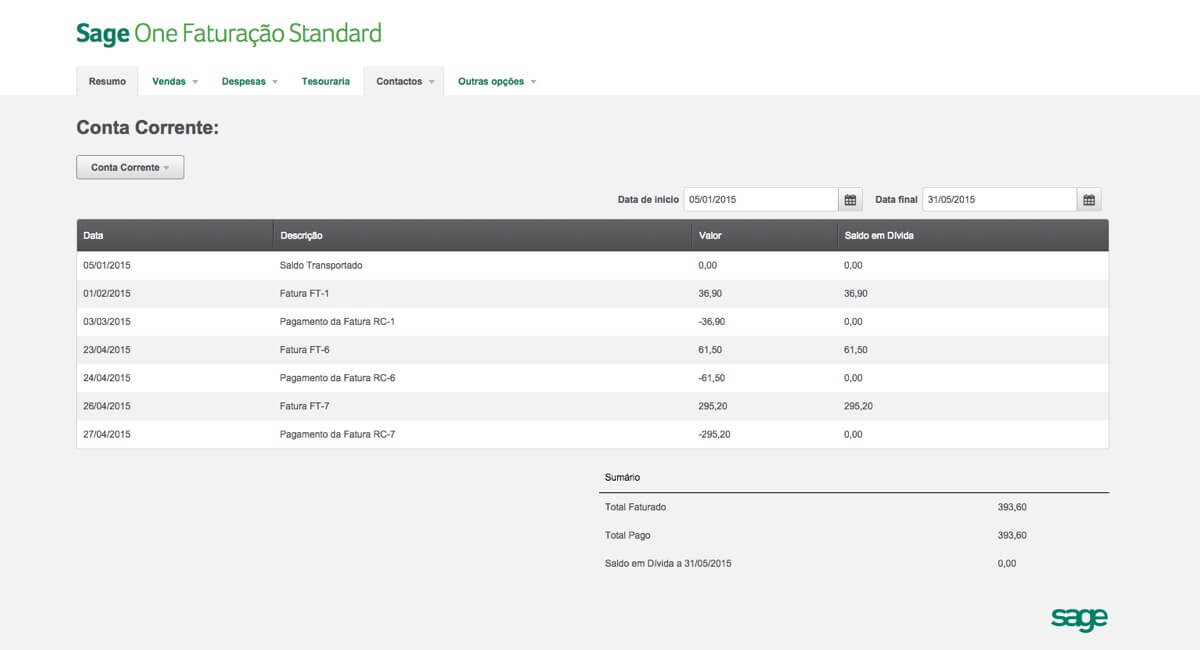 Sage One para Faturação Online